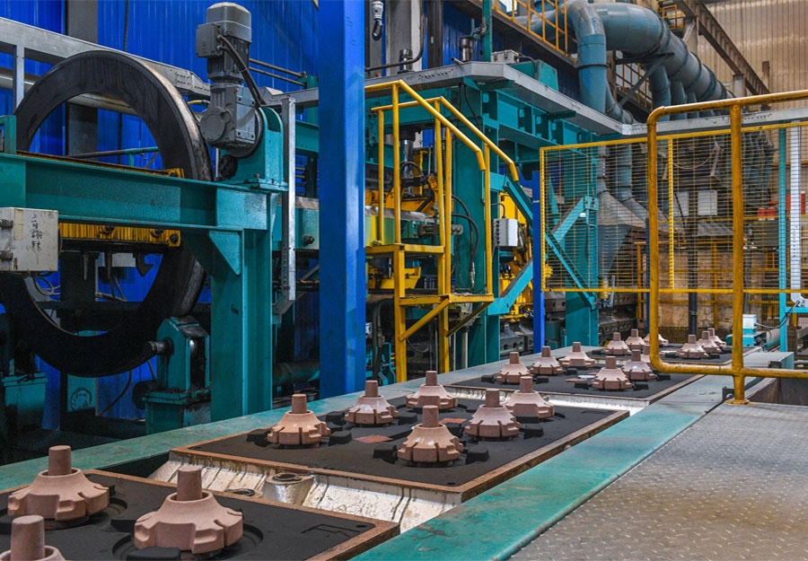 鑄造靜壓線采用知名品牌的砂處理系統、鐵水自動轉運系統、自動澆注系統、熔煉電爐。通過先進的通訊系統實現了設備間的數據交互。通過引入智能化設備和系統,可以實現生產過程的自動化和智能化,提高生產效率和產品質量穩定性。